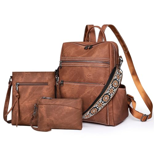 Backpack Purse for Women Pu Leather Travel Backpack Fashion Designer Shoulder Bag Ladies Convertible Handbags (Caramel)
